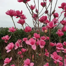 Магнолия 'Soulangeana' е едно от най-красивите и популярни цъфтящи дървета, които можете да отгледате в градината си. С големите си, чашовидни цветове в различни нюанси на розовото, лилавото и бялото, тя е истинска наслада за очите през пролетта.ХарактеристикиЦветове: Едно от най-забележителните неща при магнолията Сулангеана са нейните големи, ароматни цветове. Те могат да бъдат единични или двойни, а цветовете им варират от чисто бяло до дълбоко лилаво, като често се срещат и нюанси на розовото. Цъфтежът обикновено настъпва преди разлистването на дървото, което прави гледката още по-впечатляваща.Листа: Листата на магнолията Сулангеана са големи, овални и с лъскава повърхност. Те се развиват след цъфтежа и придават на дървото плътен и привлекателен вид през летните месеци.Размер: В зависимост от сорта, магнолията Сулангеана може да достигне височина от 4 до 10 метра и ширина на короната от 3 до 6 метра.Растеж: Това е бавнорастящо дърво, което обикновено достига зрелост за около 20 години.Условия за отглежданеСветлина: Магнолията Сулангеана предпочита слънчеви или полусенчести места.Почва: Добре дренирана, богата на органична материя и леко кисела почва.Поливане: Младите дървета се нуждаят от редовно поливане, докато по-старите са по-устойчиви на суша.Подрязване: Обикновено не се нуждае от подрязване, освен ако има счупени или болни клони.ГрижиТорене: Прилагайте тор за цъфтящи растения през пролетта.Защита: Младите дървета трябва да бъдат защитени от студени ветрове и силни слънчеви лъчи.Болести и вредители: Магнолията Сулангеана е относително устойчива на болести и вредители.Използване в градинатаМагнолията Сулангеана е прекрасно допълнение към всяка градина. Тя може да бъде засадена самостоятелно като солитер или в група с други дървета и храсти. Често се използва за създаване на алеи, живи плетове или като фокусна точка в градината.Магнолията 'Soulangeana' е едно от най-красивите и впечатляващи дървета, които можете да отгледате в градината си. С малко грижи, тя ще ви радва с великолепните си цветове всяка пролет.Предлаганите растения с височина 60 см и са в саксия C2 !Разгледайте специалната ни колекция Магнолии..